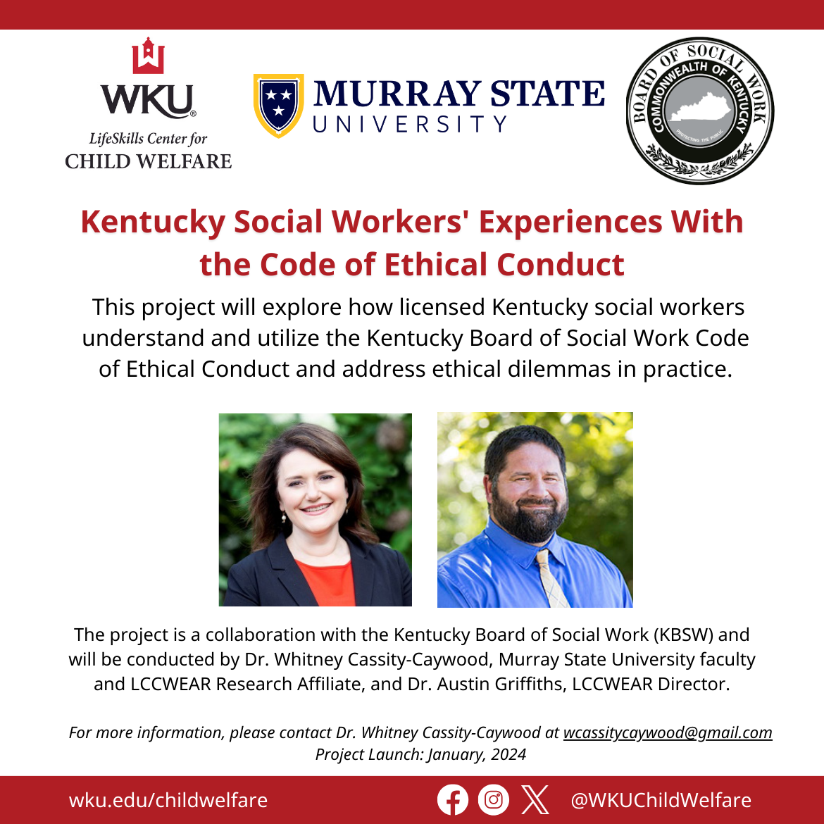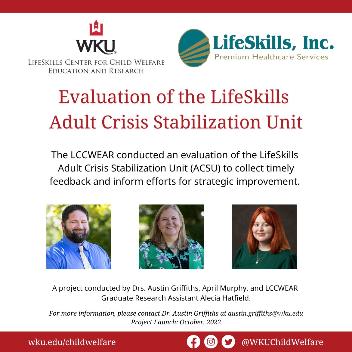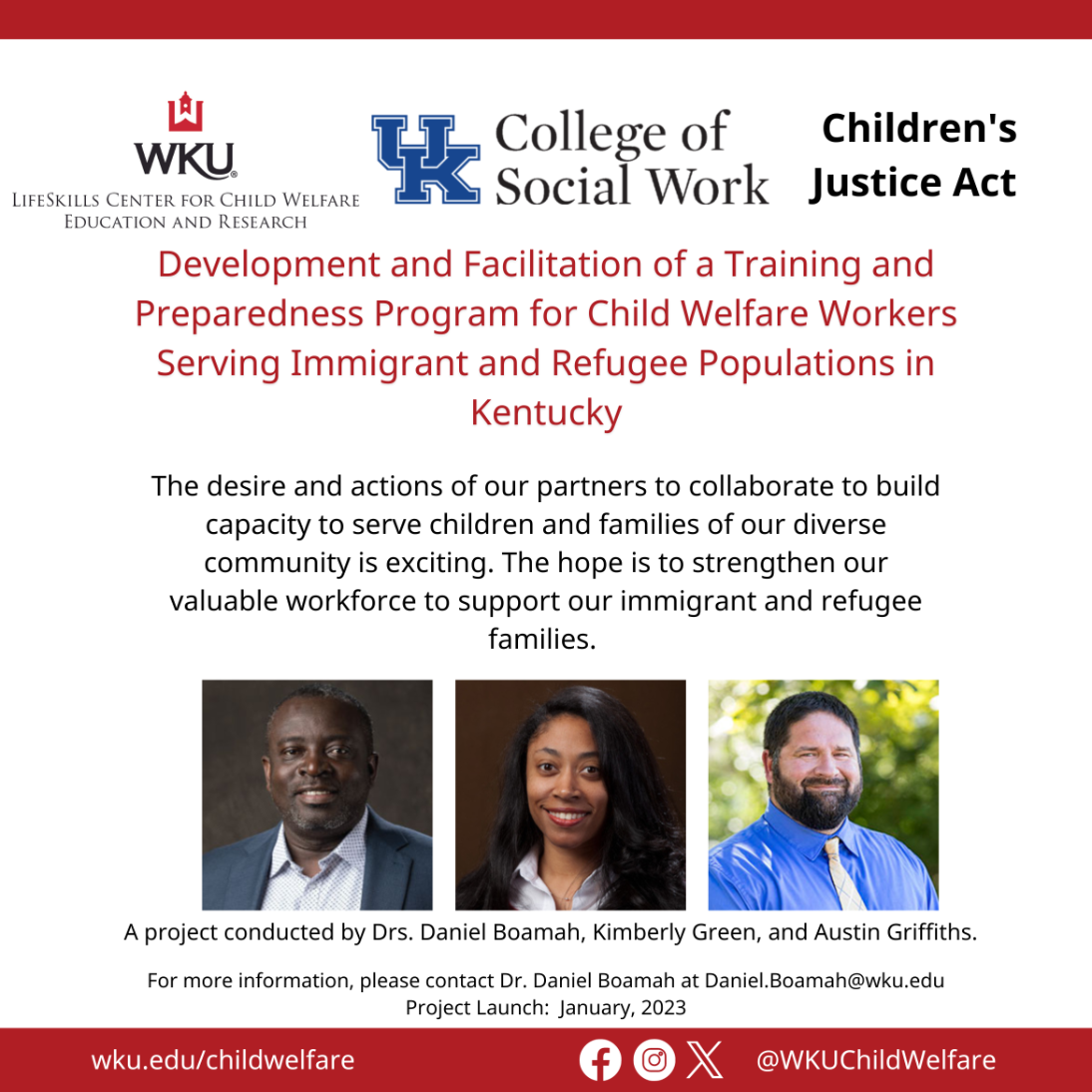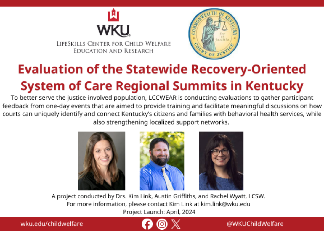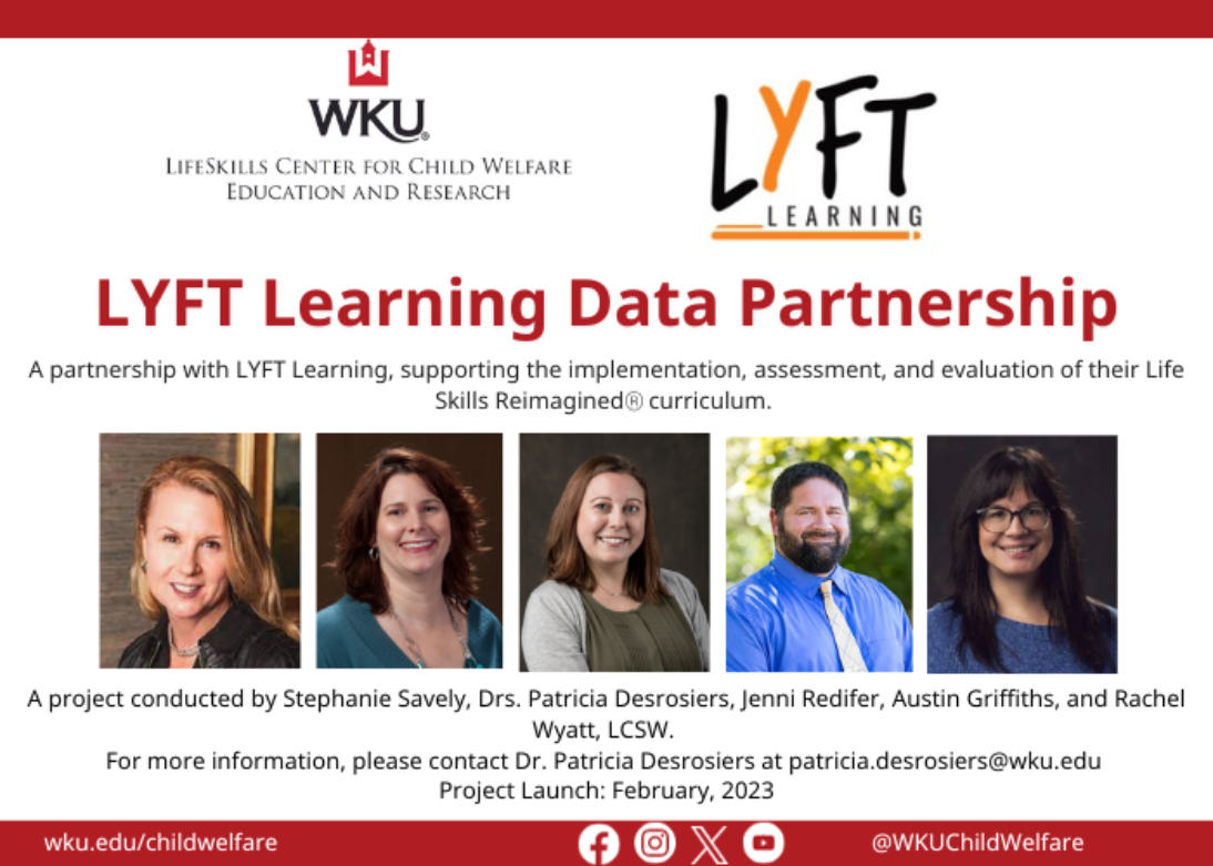 The LifeSkills Center for Child Welfare Education and Research is involved in several projects. Check out the ones below, with more to come. Also, make sure to follow us on social media @WKUChildWelfare!