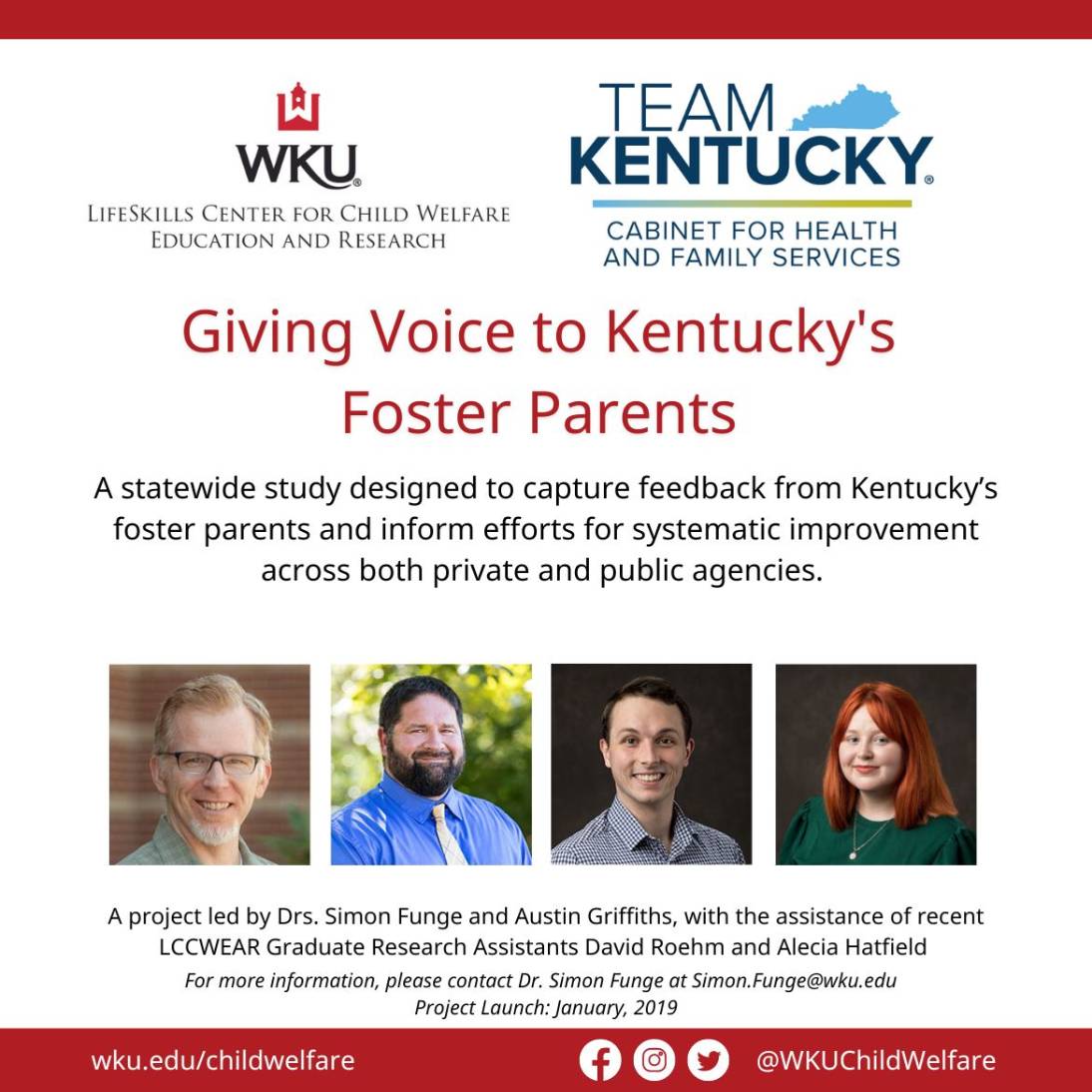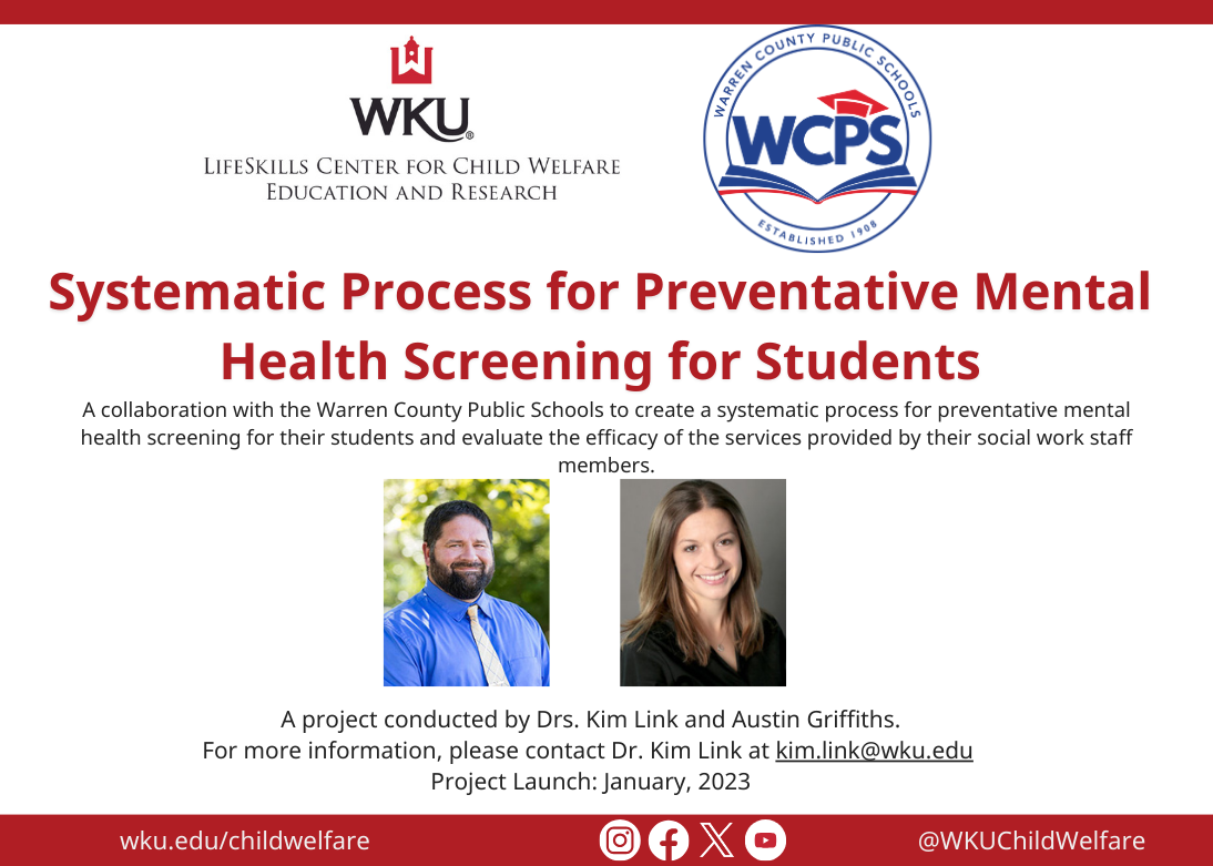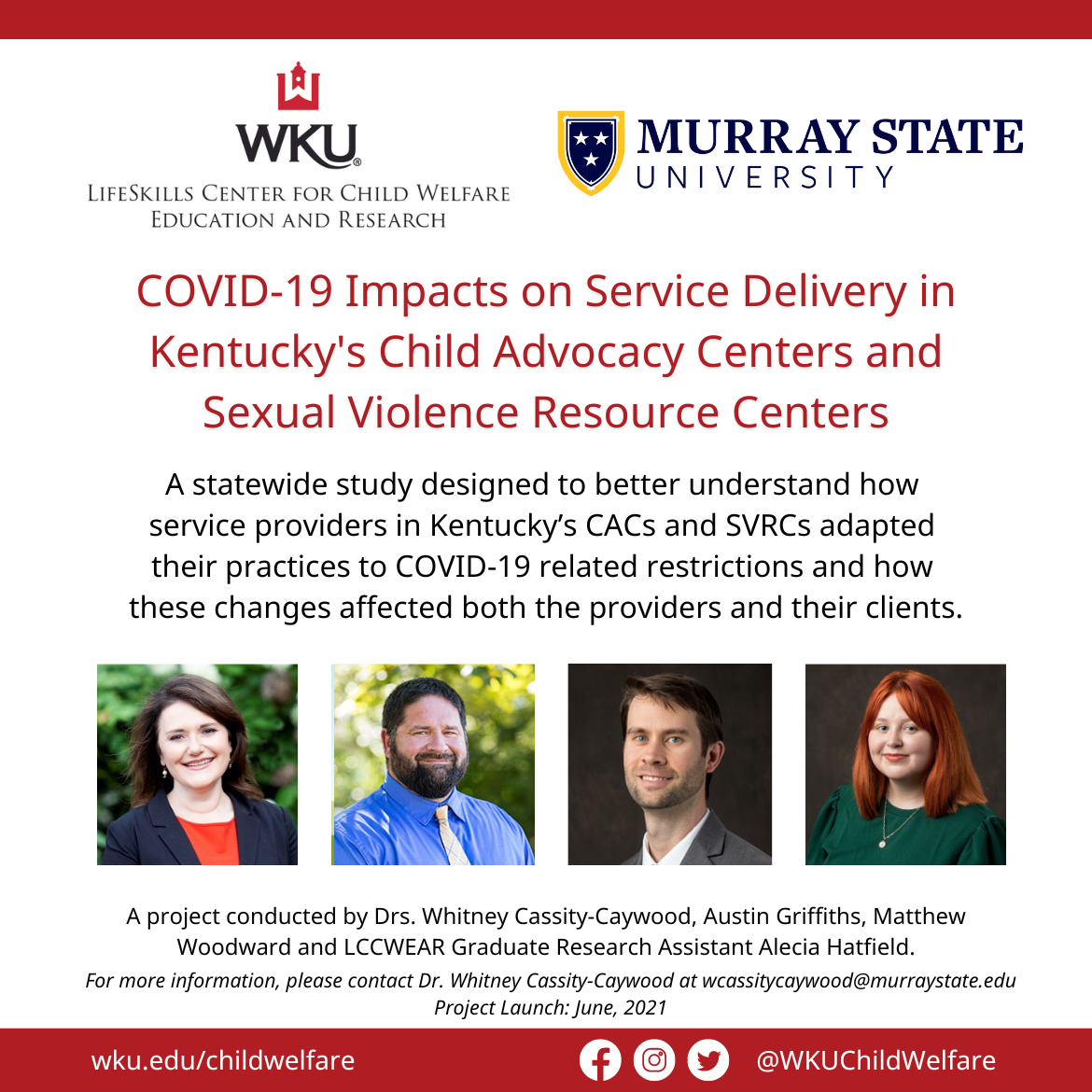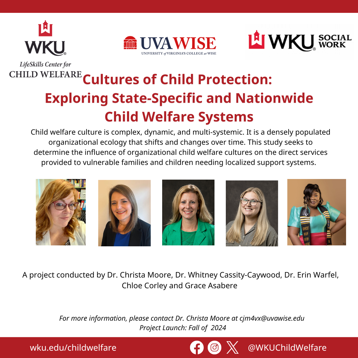 The LifeSkills Center for Child Welfare Education and Research is involved in several projects. Check out the ones below, with more to come. Also, make sure to follow us on social media @WKUChildWelfare!