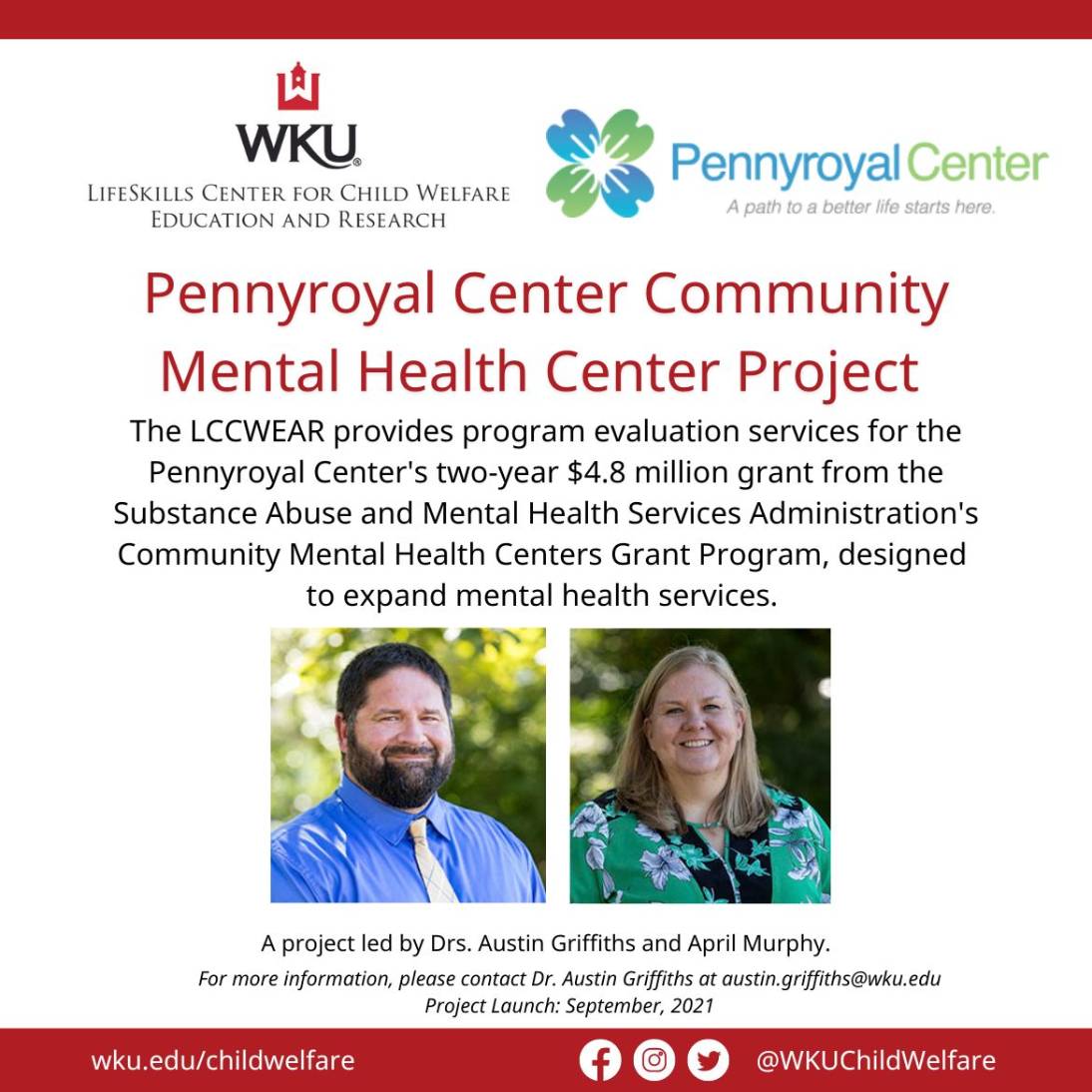 Learn More The LCCWEAR provides program evaluation services for the Pennyroyal Center's two-year $4.8 million grant from the Substance Abuse and Mental Health Services Administration's Community Mental Health Centers Grant Program, designedto expand mental health services.