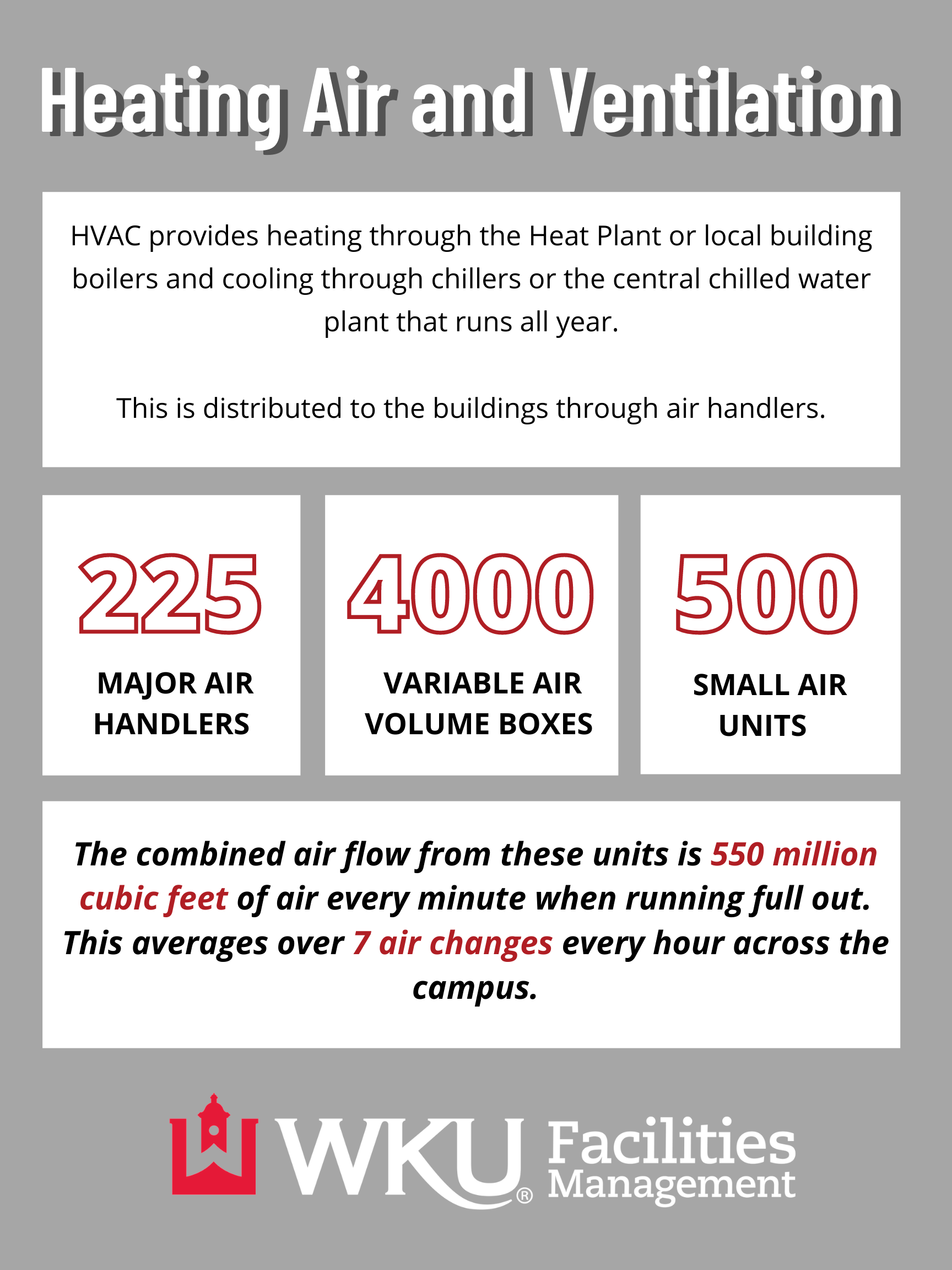 Plant Operation's maintains and monitors all utilities across campus. These operations are essential to maintaining campus comfort and keeping campus in working order. Plant Operation's controls the building system through Metasys from Johnson Controls.