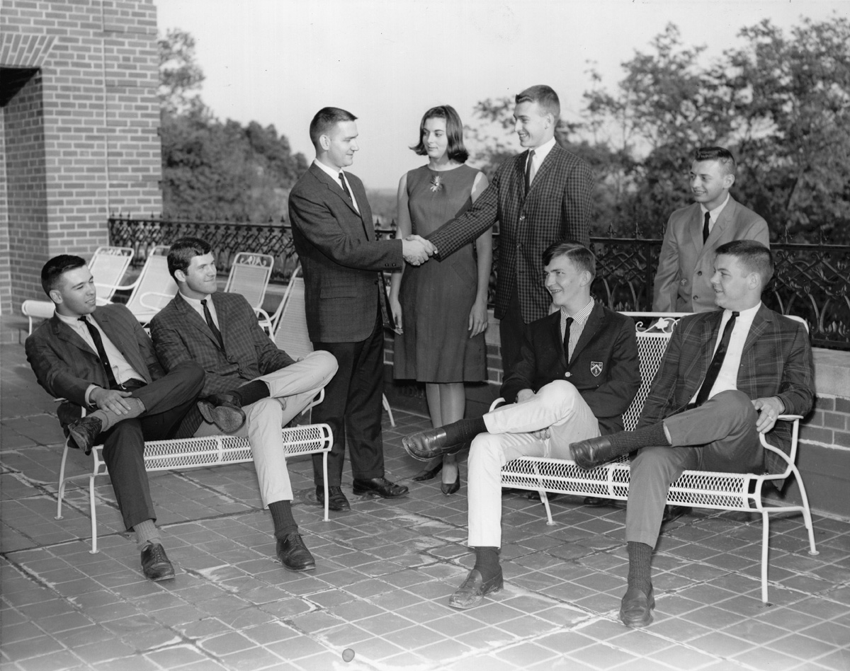 Western Debate Associates![]() (standing) Dave Clark, Paul Hightower, Bob Purdy; (seated) Pem Newberry, Ellen Graves, Mark W. Skillern, Jack Hanson; (not pictured) William L. Durham and George R. Wilson Jr. At the state tournament, Bob Purdy placed first in discussion, and Judy Woodring placed second in interpretation of literature.11 Larry Winn placed second at the KY Intercollegiate Oratorical Association contest.12 Mr. Winn later became professor of Communication at WKU, and acted as interim Department Head in the 1990s. As for the team, the yearbook notes that the team competed in roughly 300 rounds of debate. [Link to 1967 Results Archive] During the 1966-67 school year, Western transformed into a university: WKU was born. |