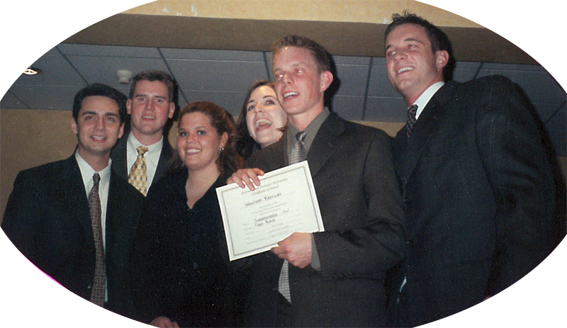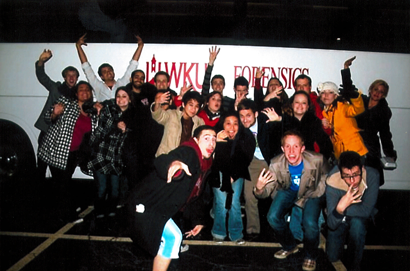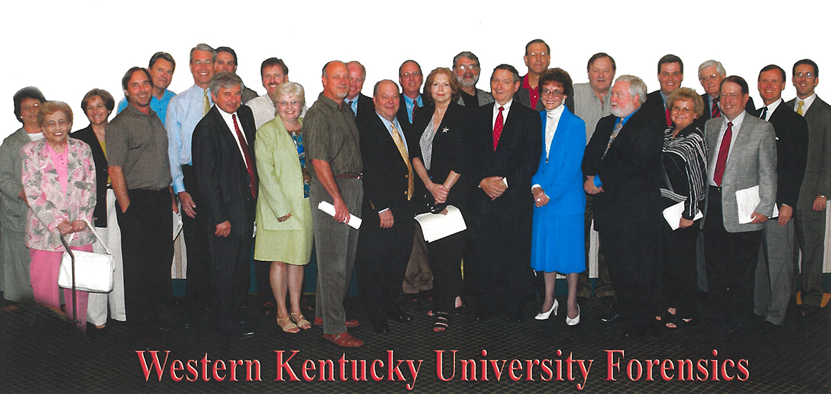 2003 is remembered as a golden year for WKU Forensics, and the above members memorialized as a dream team, having swept three national tournaments (NFA, FA, and DSR), the state tournament, and the international tournament. The same year, the staff created an alumni association, to be named the next year, and summoned alumni to meet. The team was represented as far back as 1956.