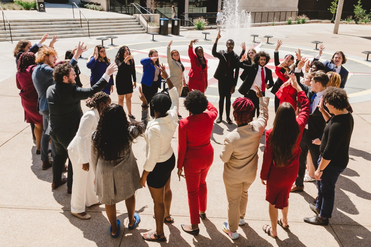 (Back row, l-r) Ganer Newman (Director), Christian Butterfield, Collin Tuerk, Somtoo Nkruhmeh, Rae Fournier, Dakota Perry, Caroline Chubb, Chad Meadows (debate dir); (2nd) Debra Gensheimer (office), Micah Poole, Caitlyn Woitena, Kole Ingram, Rashon leday, Jonah Johnson, Evan Grisham (GA); (3rd) Jaleon Brown, Miles Morton, Reginald Jefferson, Joseph Eberle, Seth Peckham (coach); (4th): Antonina Clementi, Cecilia Alali, Rachel Akinbayo, Noah Gordon; (5th) Kirsten Eversmann, Danielle Williams, JaKayla Brown, Andre Swai, Ben Robin (IE dir), Sean Diaz (coach); (front) Denise Marine, Tanya Prabhakar, Hannah Jones, Tani Washington, Samantha Sallee, Gabriella Abuanza, Shainna Ralston, Mauricio Patino