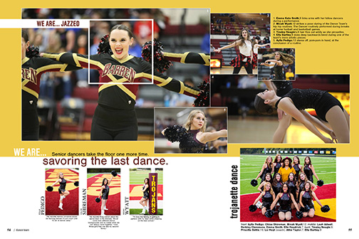 Judge's comments: I was looking for intriguing spreads with balanced design, striking colors and a contrast between copy and photography. More specifically, I was looking for cohesiveness within all these aspects. First place had beautiful images of dancers performing various choreographed acts. I liked how well-rounded the story was, as different dancers were featured in the copy, in the photos and on the side of the pages. I also enjoyed the way the spread was designed. Third place contained mostly photos, but I felt I learned a lot about the students from the detailed captions. It is my belief that captions should add to a story, and in the case of this submission, I believe the captions supply enough efficient detail for readers even without a full story to accompany them. I liked the layout of this spread as well. Second place had vibrant colors and provided me with an interesting photo story. I liked that I could feel the students’ love for their class through the copy, the photos and the provided captions. The story felt reminiscent of the high school experience, and for these reasons, I am giving this entry second place.