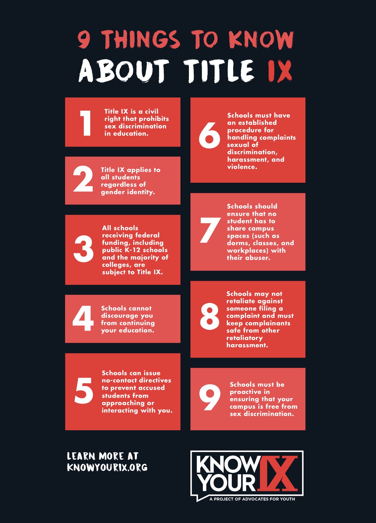 "No person in the United States shall, on the basis of sex, be excluded from participation in, be denied the benefits of, or be subjected to discrimination under any education program or activity receiving Federal financial assistance." – Title IX of the Educational Amendment of 1972
