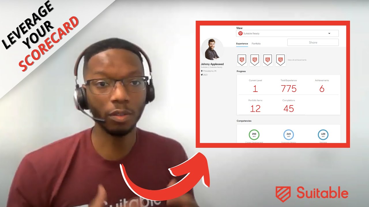 - See your progress as you build your skills, work toward incentives, and engage with the Suitable Scorecard.